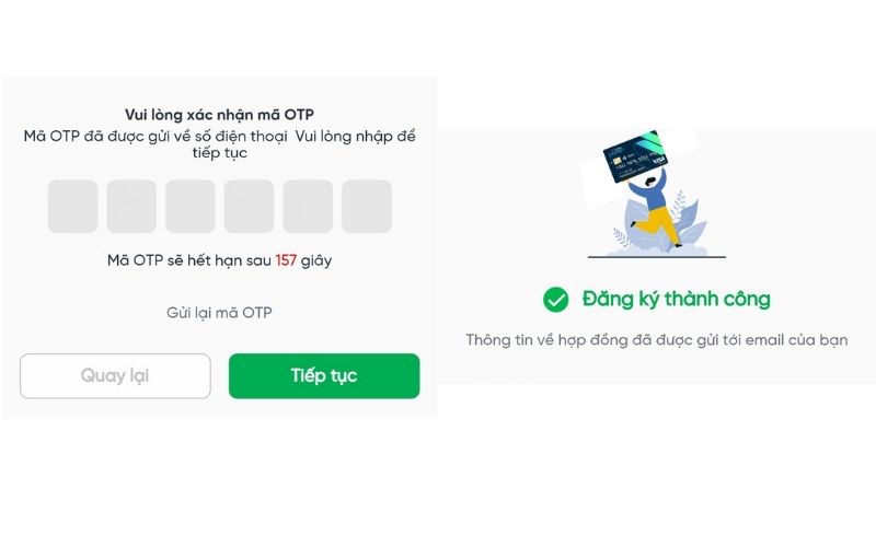 Bước 6: Xác minh Mã OTP điện thoại, và bạn đã đăng ký tạo thành công tài khoản ngân hàng online chỉ với 5 phút