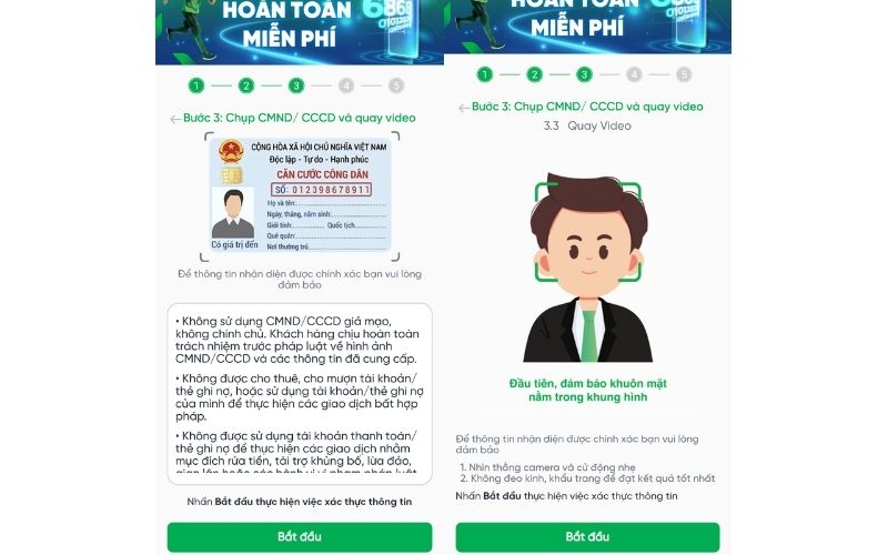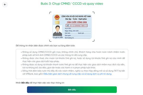 Nhấn bắt đầu để thực hiện xác minh CCCD và khuôn mặt