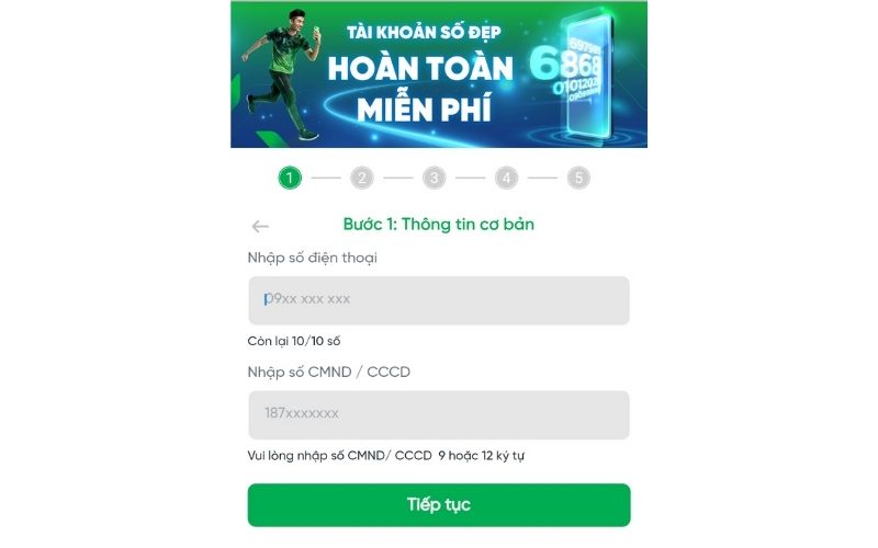 Bước 2: Vào ứng dụng, chọn “Mở tài khoản ngân hàng” và điền thông tin cá nhân
