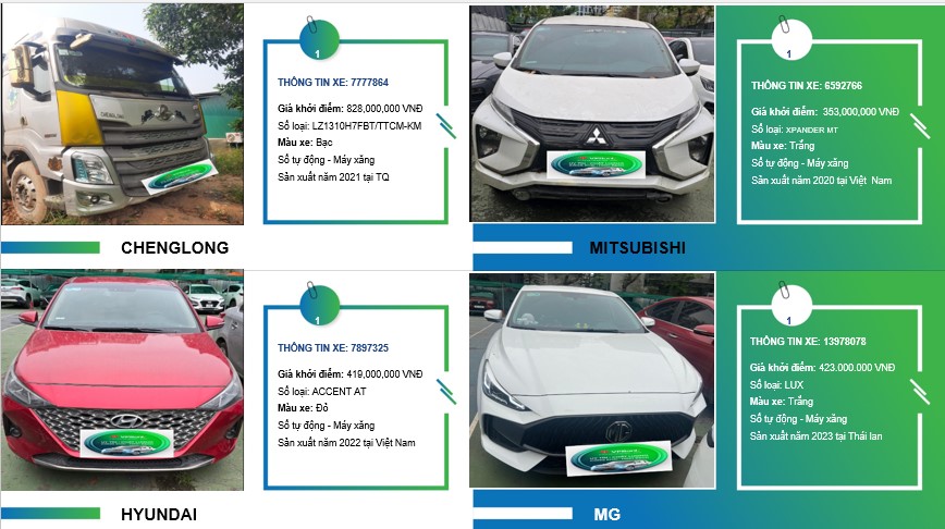 Chi tiết danh mục các xe ô tô đang được bán đấu giá như sau: