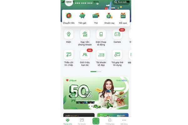 Hỗ trợ khác: tích điểm đổi quà, gửi tiền mừng, chia sẻ ứng dụng nhận tiền, tra cứu lãi suất, quản lý thẻ,...