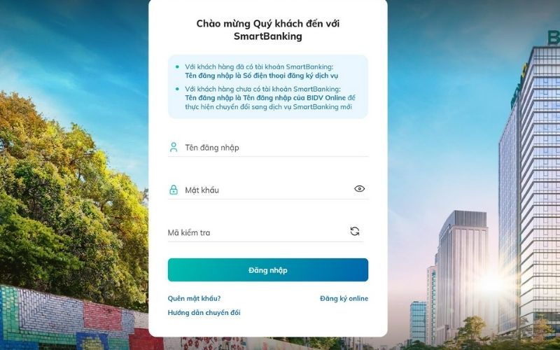 Nhập các thông tin: Số tài khoản/ thẻ. số CMND/ CCCD, địa chỉ email, số điện thoại, chọn chi nhánh giao dịch (bao gồm thành phố, tên chi nhánh), nhập Captcha.
