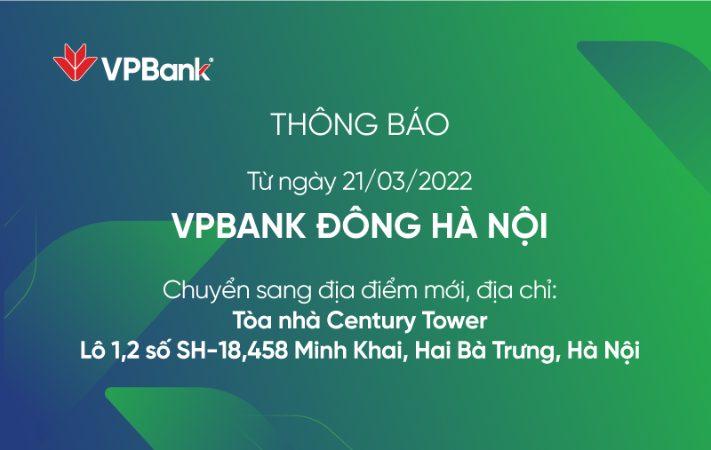 Kể từ ngày 21/03/2022 VPBank Đông Hà Nội chính thức hoạt động tại địa điểm mới. Chi tiết: