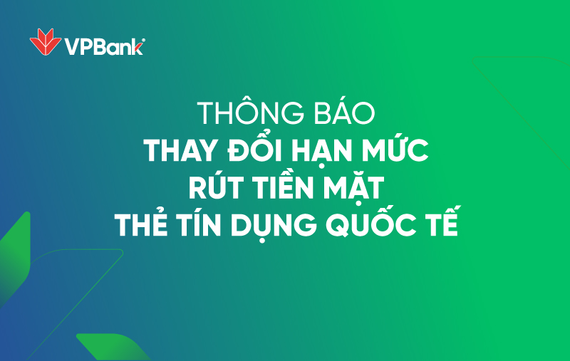 Thông báo thay đổi hạn mức rút tiền mặt thẻ tín dụng quốc tế VPBank