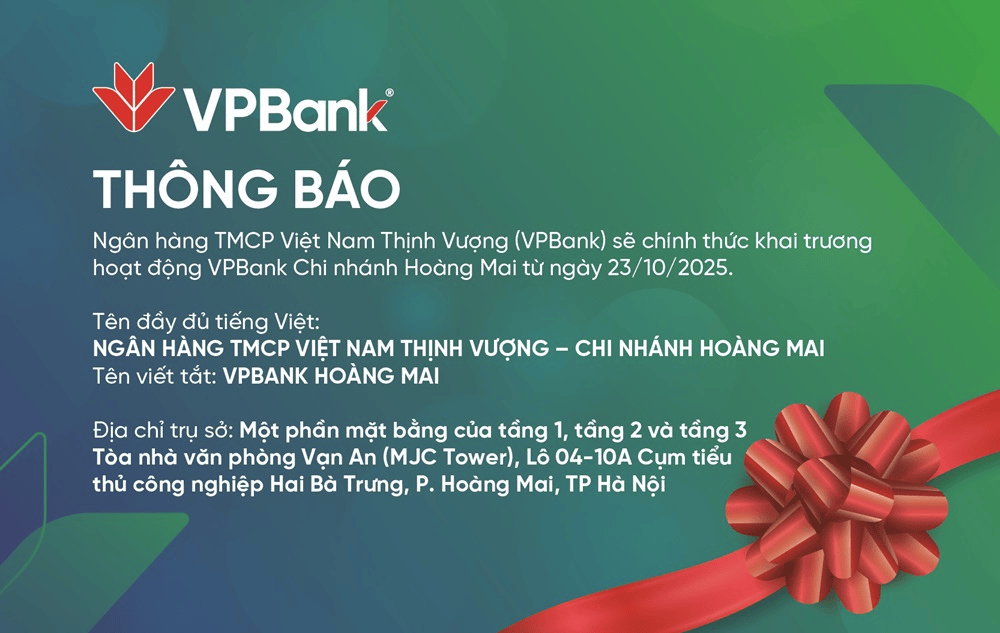 Ngân hàng TMCP Việt Nam Thịnh Vượng (VPBank) sẽ chính thức đưa vào hoạt động VPBank Chi Nhánh Hoàng Mai: