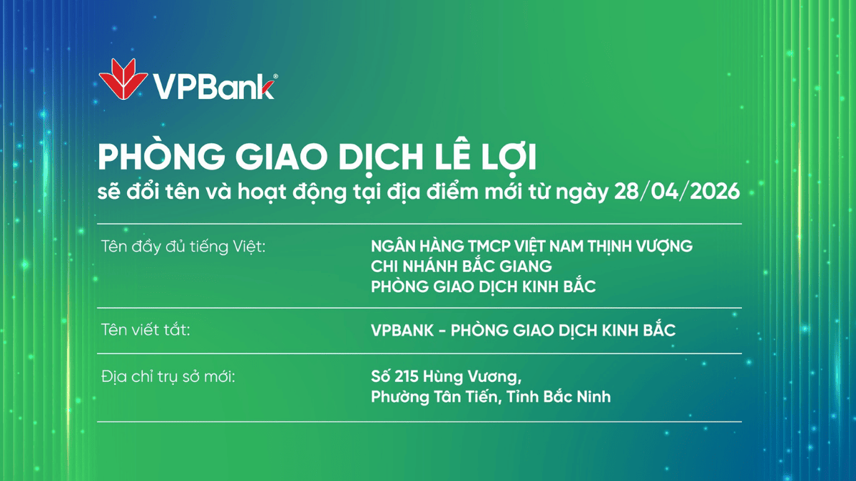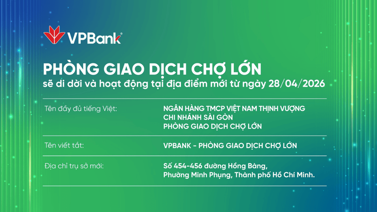 Thông báo: Từ 28/04/2026, VPBANK CHỢ LỚN thay đổi địa chỉ hoạt động