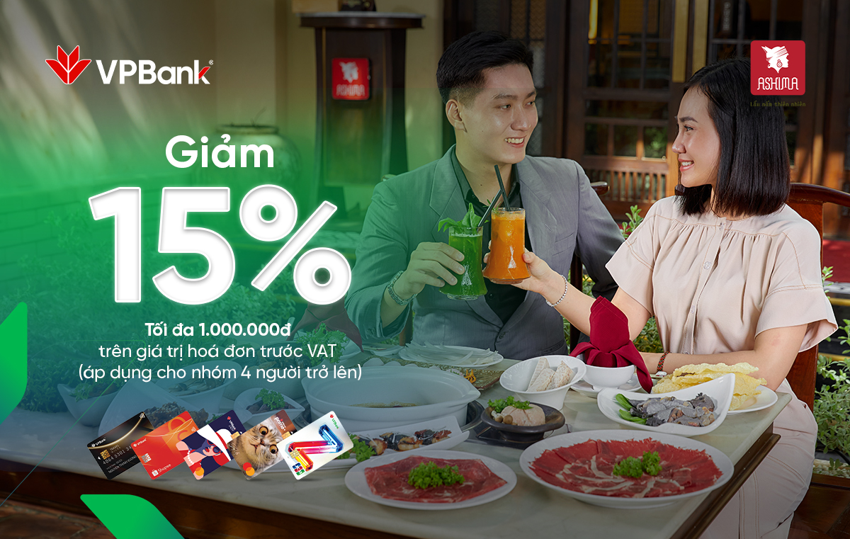 Giảm đến 15% khi chi tiêu bằng thẻ tín dụng VPBank tại Ashima