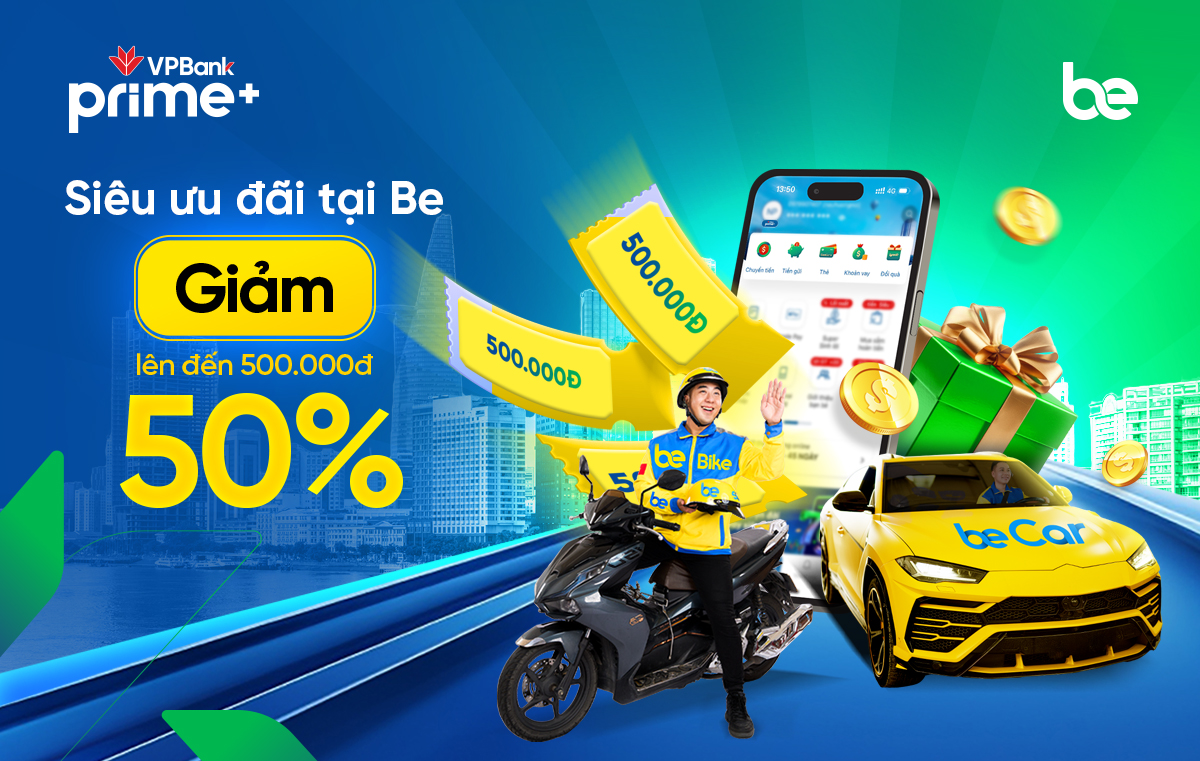Hội viên VPBank Prime sống chất – trải nghiệm chất chẳng thể bỏ qua cơ hội săn deal chất! Từ nay tới 31/12/2025, VPBank Prime hợp tác cùng BE mang đến combo ưu đãi xịn sò trị giá tới 500.000đ dành riêng cho Quý khách khi lần đầu sử dụng Tài khoản thanh toán VPBank trên ứng dụng BE.